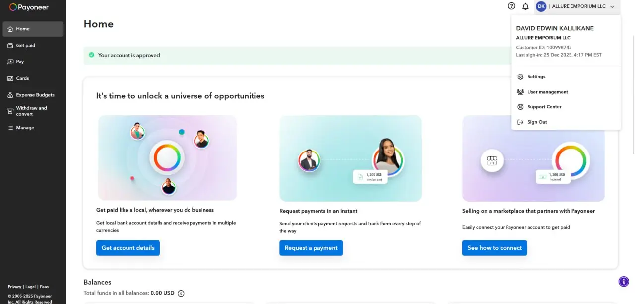 A verified Payoneer account means you’ve passed Payoneer’s identity, compliance, and risk checks. Payoneer confirms you are a real person or a legitimate business that follows international financial rules.