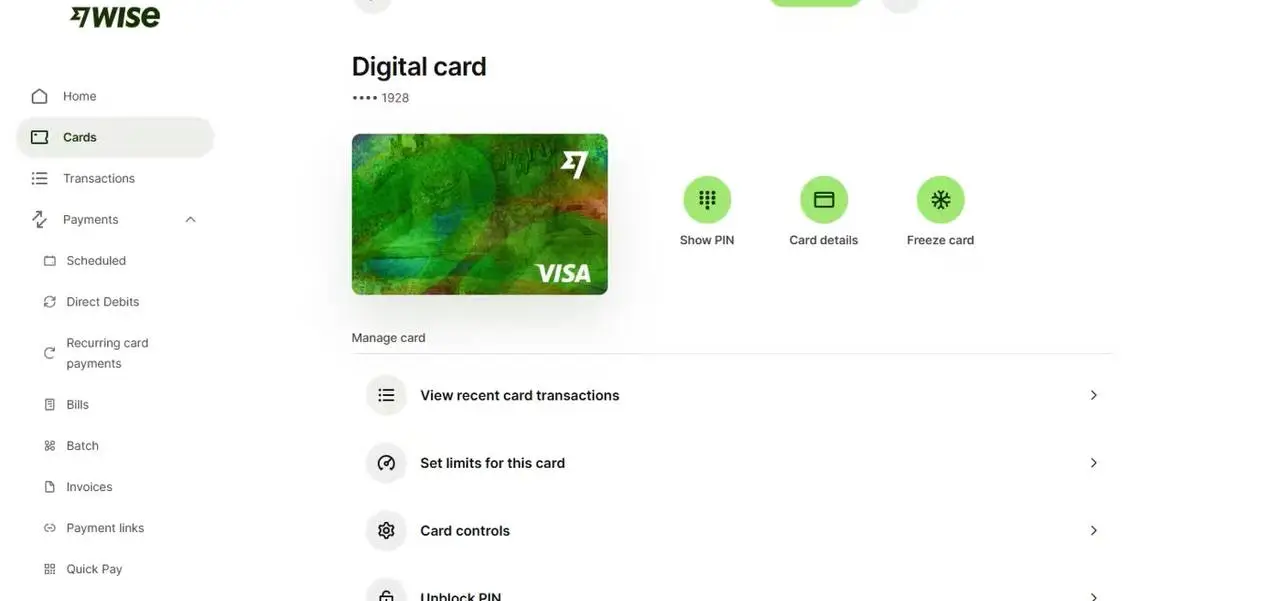 Look at your Wise dashboard to see if your account is verified and what features you have.